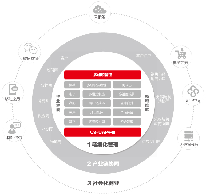 用友U9秉承互联网基因,是全球第一款基于SOA云架构的多组织企业互联网应用平台。U9以精细化管理、产业链协协同与社交化商业,帮助多组织企业(多事业部/多地点/多工厂/多法人)在互联网时代实现商业模式创新、组织变革与管理升级。